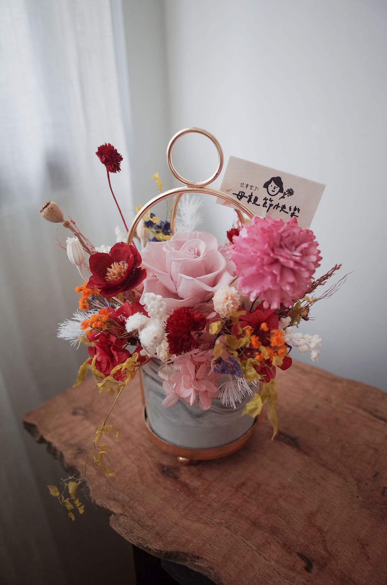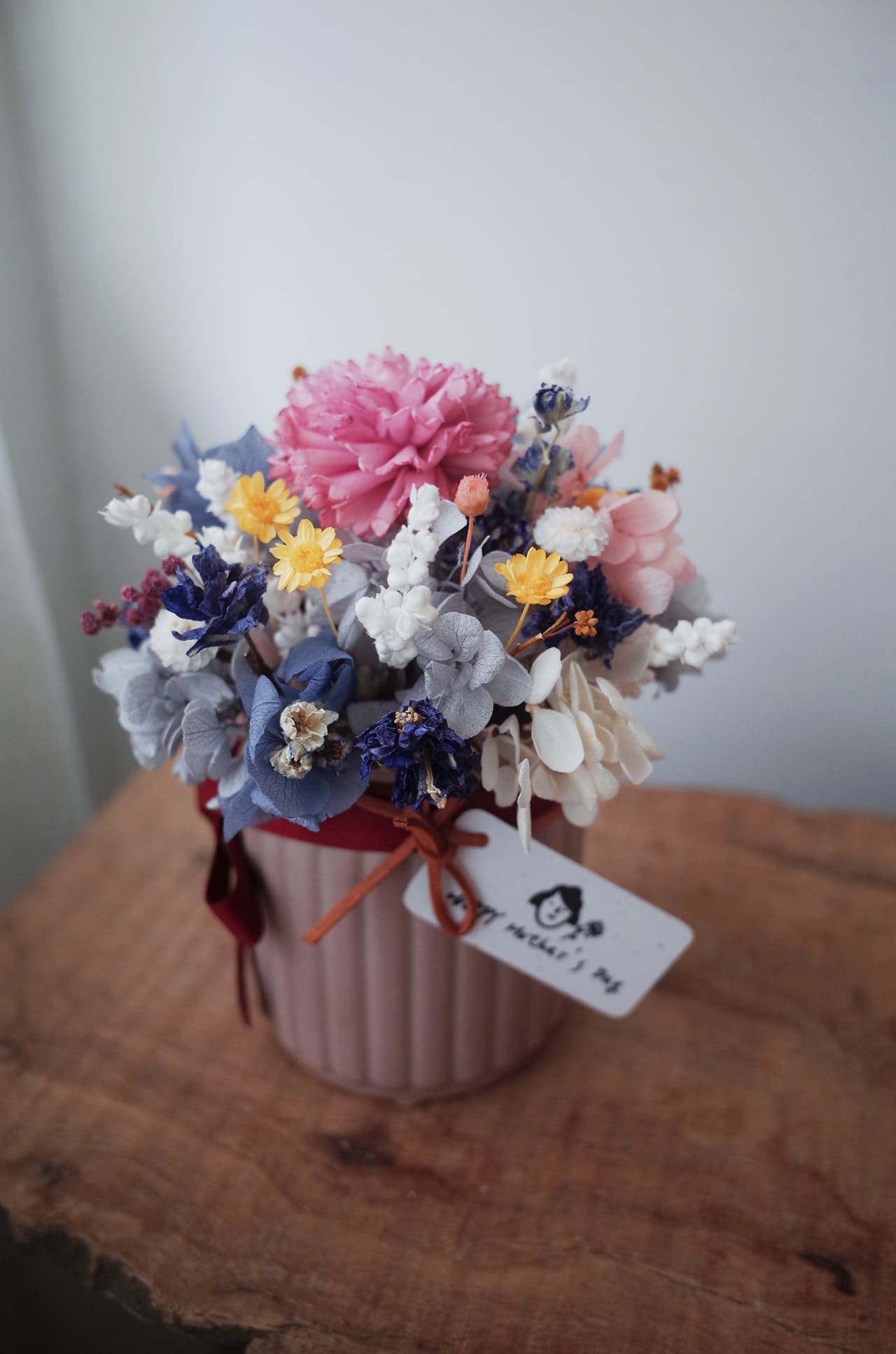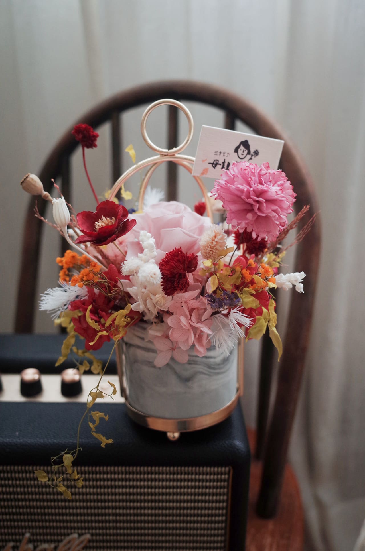 主花為索拉花(可擴香),不凋花繡球與乾燥花製作而成