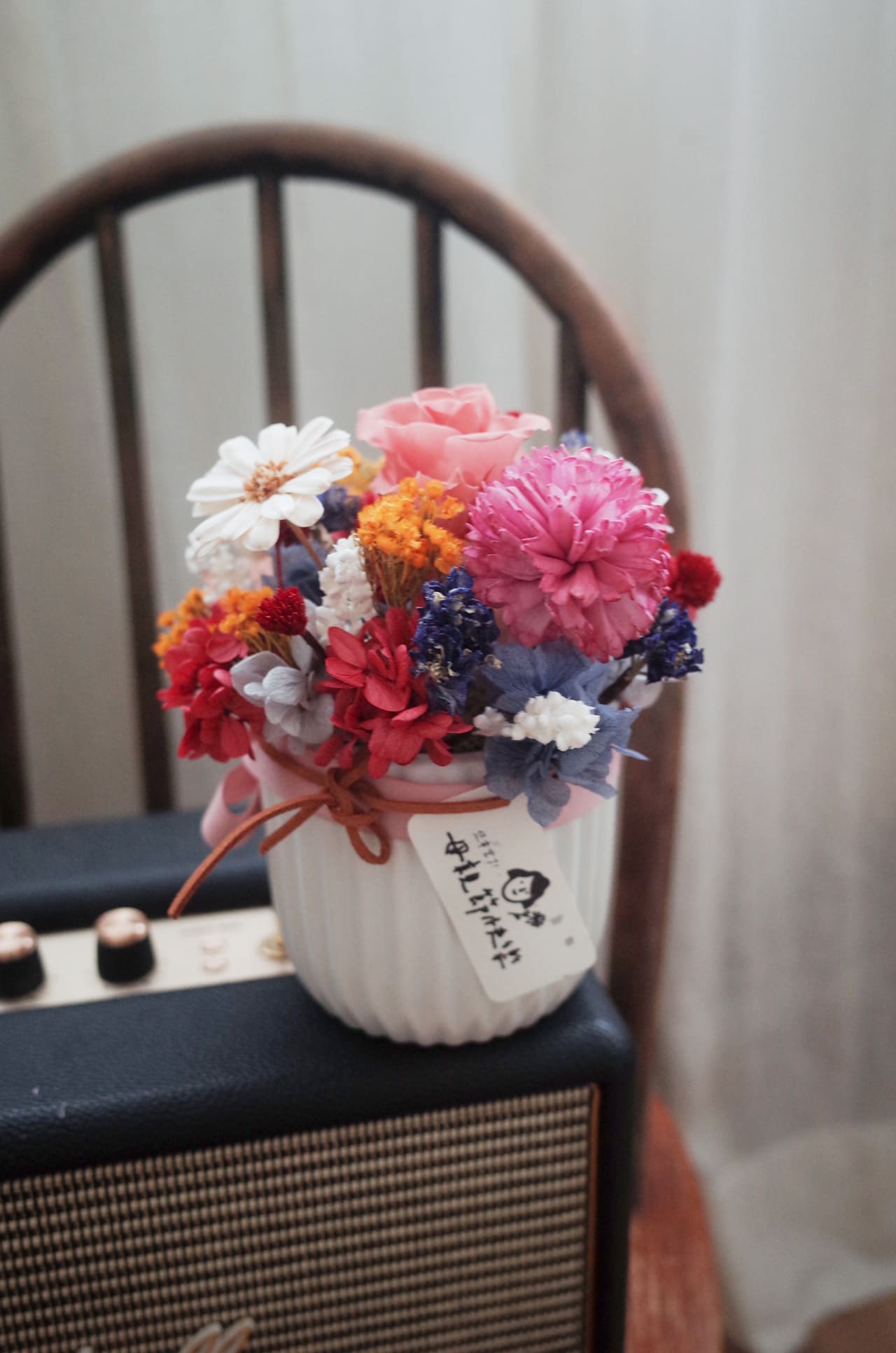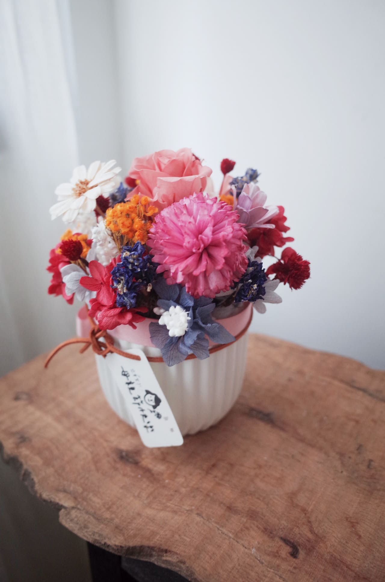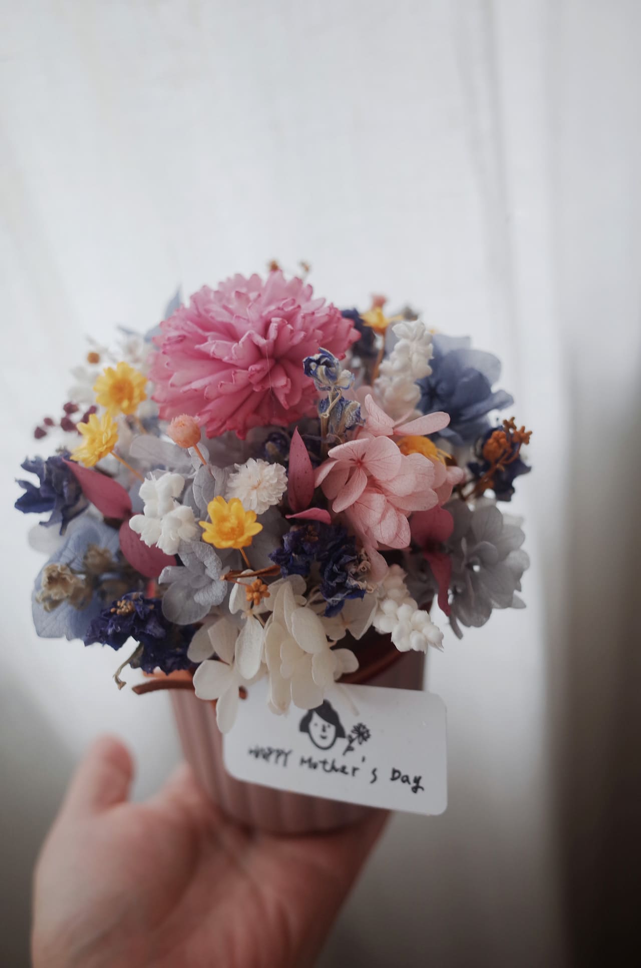 主花為索拉花(可擴香),不凋花繡球與乾燥花製作而成